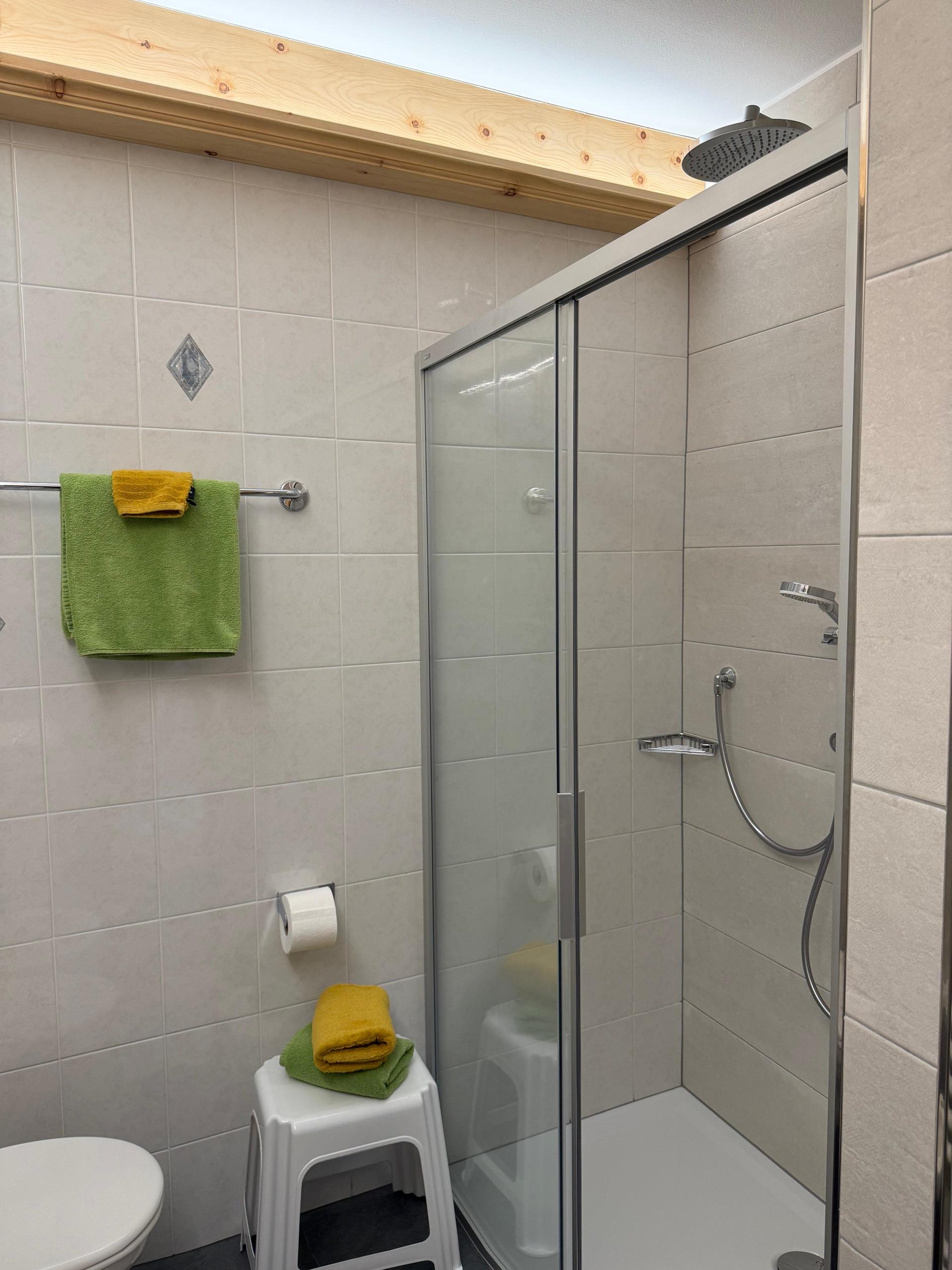 The self-catering apartment Alpenrose in the attic benefits from a kitchen and living area with sitting area and sofa-bed for 2 people, 2 separate double rooms for 6 people and two bathrooms with shower, hair dryer, toilet, bidet and sink. The southwest facing balcony affords views of the valley.