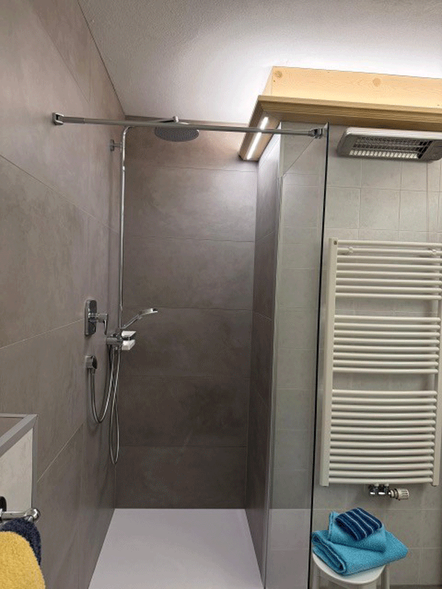 Situato in mansarda, l'appartamento Rododendro è composto da un soggiorno con angolo cottura e angolo salotto dotato di divano letto per 2 persone, da 2 camere matrimoniali separate per 6 persone e da due stanze da bagno con doccia, asciugacapelli, WC, bidet e lavabo. Il balcone rivolto a sud-ovest offre una meravigliosa vista sulla vallata.